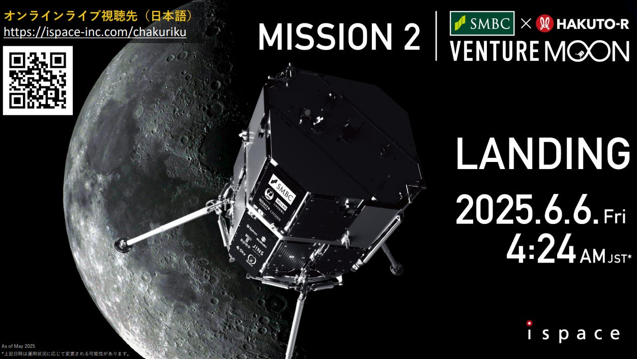 2025 年 6 月 6 日凌晨,日本的宇宙開發新創公司「 ispace 」將迎來一個關鍵時刻:他們的月面著陸船 「Mission 2」 預定在日本時間凌晨 4 時 24 分左右,嘗試登陸月球「氷の海」中央附近地區。