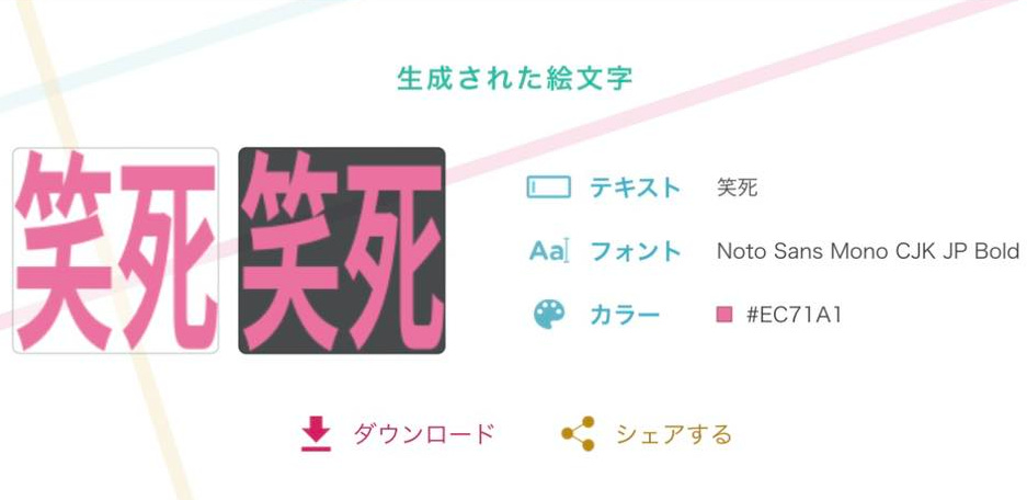 大家可以看到日文的emoj有很多把文字都擠在裡面形成的小圖案,這是特別受歡迎的一種樣式。我在網路上也有看到專門給Slack Emoji 生成器可以在這裡分享給大家。像是我最近剛剛加入新公司,馬上就加了一個我自己很愛用的符號,沒有這個都不知道該怎麼聊天了。
