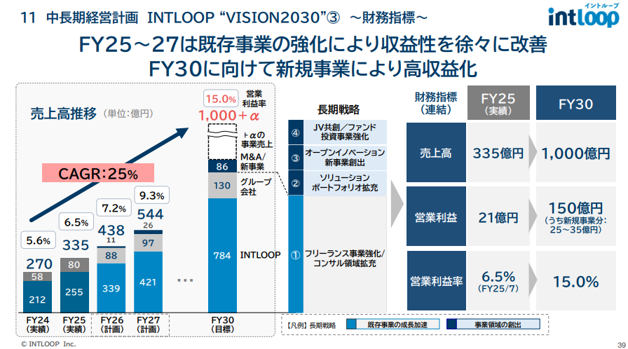 INTLOOP已經為自己設定了一個雄心勃勃的目標:到2030年前,將年度營收提升至1,000億日圓,營業利益達到150億日圓,並把營業利益率進一步拉高至15%。