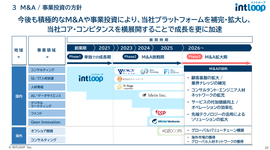 INTLOOP的成長並不只依賴內部平台的自然擴張,它還積極透過M&A與子公司化來擴展事業版圖。