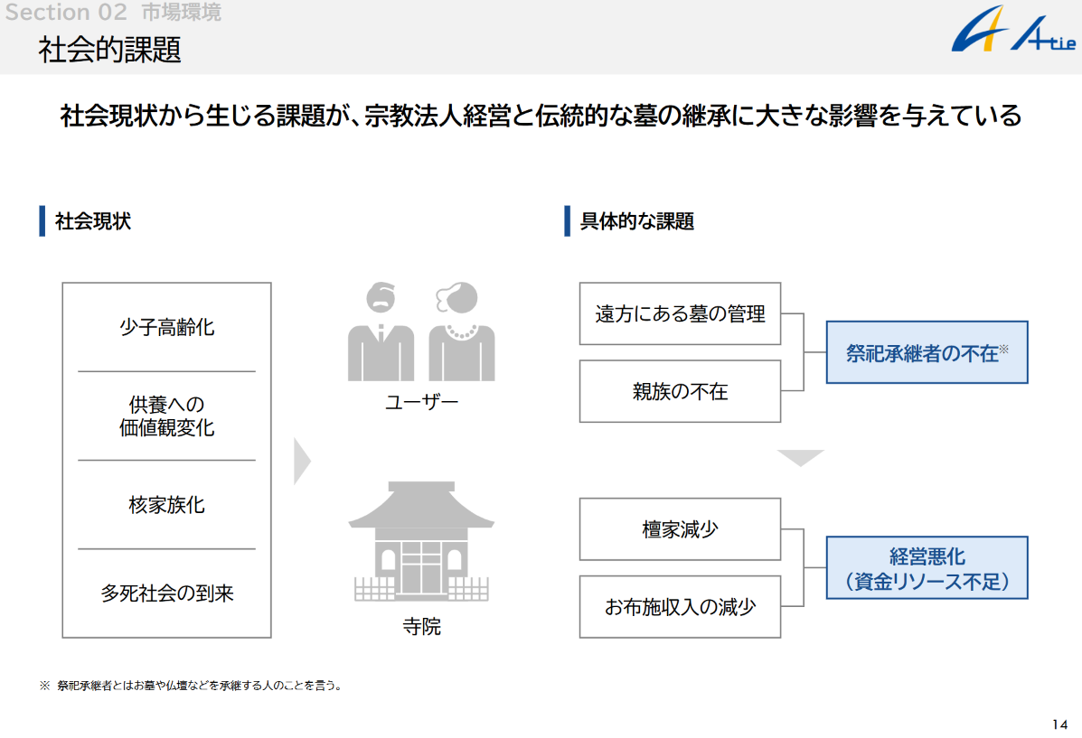 它的核心業務是幫寺廟規劃、建立並經營「永代供養墓」。乍聽之下,或許很難想像這樣的傳統領域能發展到IPO,但深入研究後才發現,這背後正好反映了日本少子化與高齡化帶來的深刻課題。