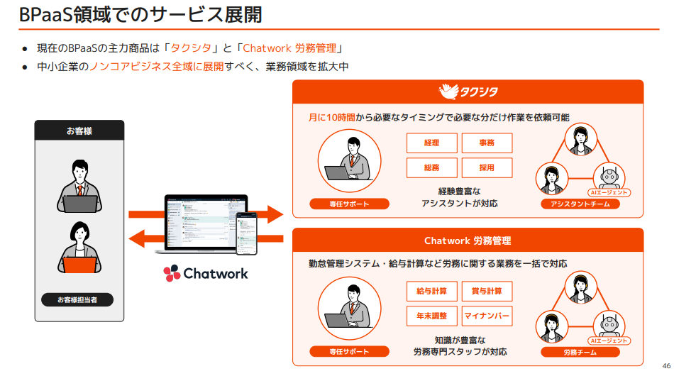 但Kubell 並未完全轉型,而是以 SaaS × BPaaS 雙主軸並行 的方式發展。在 Chatwork 的龐大基盤上(導入 93.5 萬社、82.2萬付費ID),公司持續強化溝通平台,同時擴展 BPaaS 代行業務。