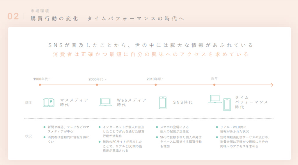 2000 年以前,日本的消費者主要透過報章雜誌獲取產品資訊,品牌擁有極大的資訊掌控權。到了 2000-2010 年代,雖然電子商務開始發展,但消費者仍然依賴實體店鋪購買決策,資訊來源仍舊偏向官方管道。進入 2010 年代,社群媒體的興起改變了資訊流通方式,消費者開始更加關注 網路上的意見領袖(KOL/KOC),並習慣在社群中尋找購物建議。