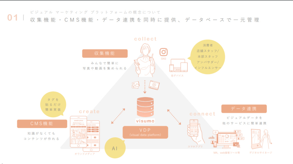 visumo 是一家專注於 MarTech(行銷科技) 的日本企業,於 2024 年下半年正式上市。公司成立於 2019 年 4 月,其核心產品與公司同名,即 Visumo,這是一款幫助品牌更有效利用視覺內容(UGC, User Generated Content)的 SaaS 服務。Visumo 的企業使命是 「讓乘載品牌想像的素材,以最合適的方式提供給消費者。」 這意味著,它的主要目標是幫助品牌 更有效地管理與展示消費者創造的內容(UGC),進一步提升品牌傳達力與購買轉換率。